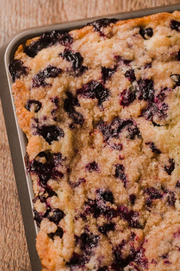 This Blueberry Buckle is a flavorful cake that has a delicious buttery flavor, with juicy berries and a tasty crumble on top! Enjoy as a breakfast with a cup of coffee, or a sweet treat later in the day with a glass of cold milk!