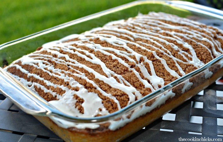 This EASY Cinnamon Roll Coffee Cake recipe combines the flavors of homemade cinnamon rolls with a moist and flavorful cake. Using simple ingredients, this coffee cake comes together using minimal effort. With a delicious, sweet icing on top, this cake is perfect any time of the day.
